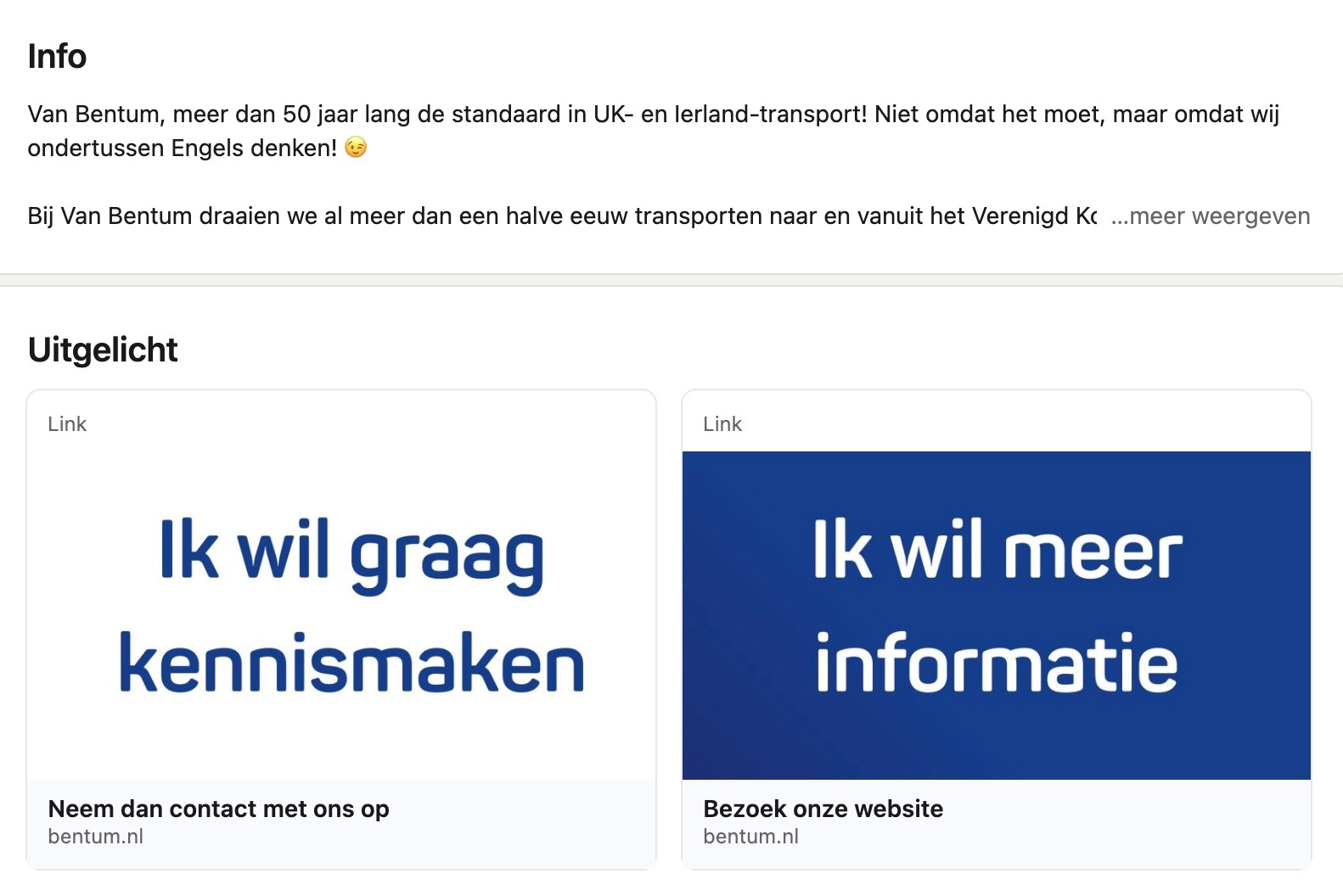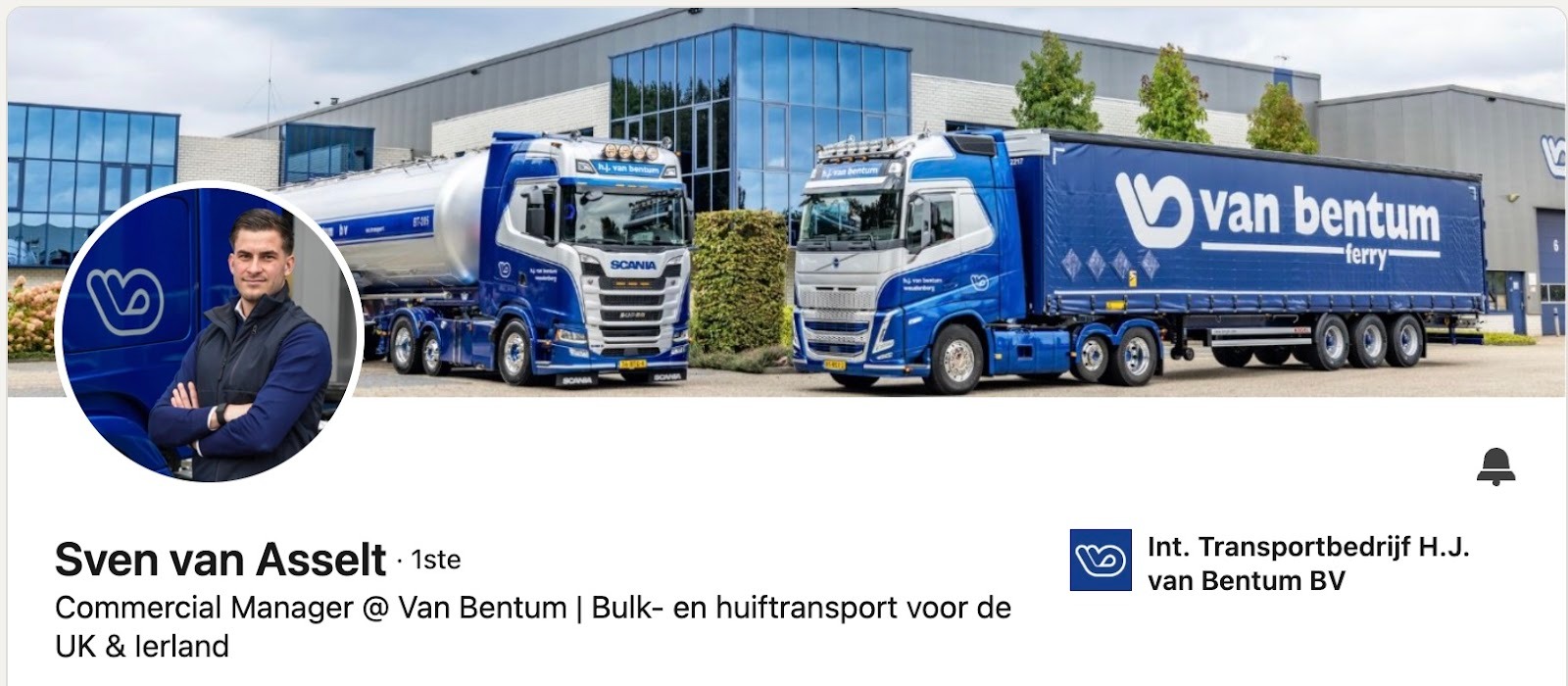 - Een pakkende headline: "Commercieel manager @ Van Bentum | Premium bulk- en huiftransport voor UK & Ierland"